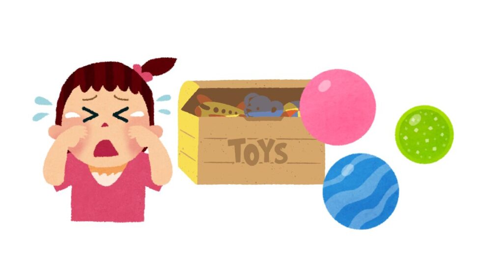 おもちゃ箱をひっくり返す→「全部出して見たかったんだね。一緒に戻そうか。」